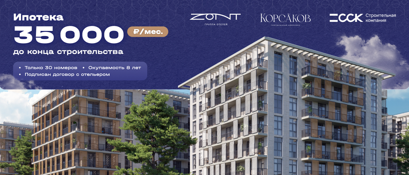 Инвестируйте в номер будущего отеля на особых условиях. Ваша ключевая финансовая нагрузка на этапе строительства фиксирована — ипотечный платёж всего 35 000 рублей в месяц.