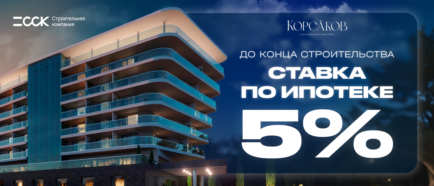 Резидентам мы предлагаем непревзойдённый сервис и уникальные технологические решения, делающие пребывание в «Корсакове» по-настоящему незабываемым. И сейчас у вас есть редкая возможность стать частью этого премиального пространства на особых условиях: ипотечная ставка всего 5% годовых — до завершения строительства!