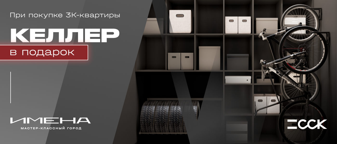 При покупке трёхкомнатной квартиры в мастер-классном городе «Имена» вы получаете кладовое помещение — келлер площадью 3 м² — в подарок . Это полезное дополнение сделает ваш быт комфортнее и организованнее. Келлер — это не просто место для хранения, а удобное пространство, которое помогает рационально использовать каждый метр вашей квартиры. С его помощью вы легко освободите жилое пространство от ненужных вещей, уберёте на хранение сезонный инвентарь, спортивное оборудование или старые книги, оставив в доме больше света, воздуха и уюта.
