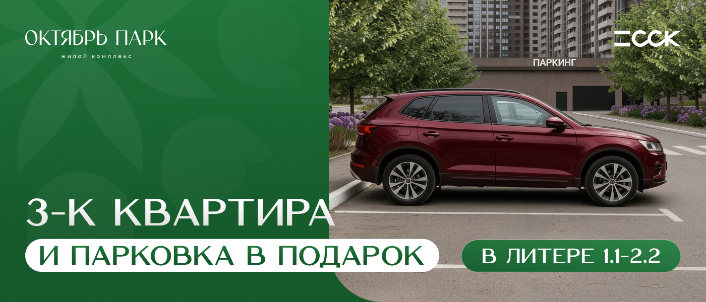 Парковка в подарок при покупке 3К в ЖК «Октябрь Парк»