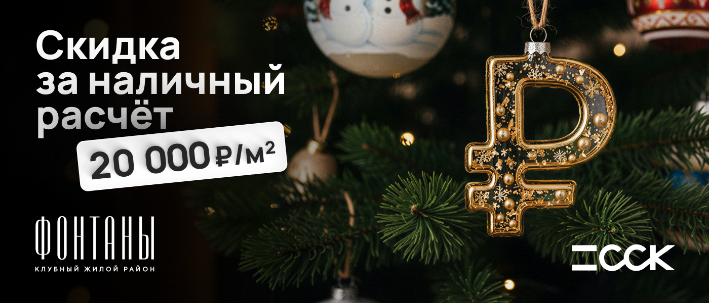 Скидка 20 000 ₽/м² за наличный расчёт в ЖК «Фонтаны»!