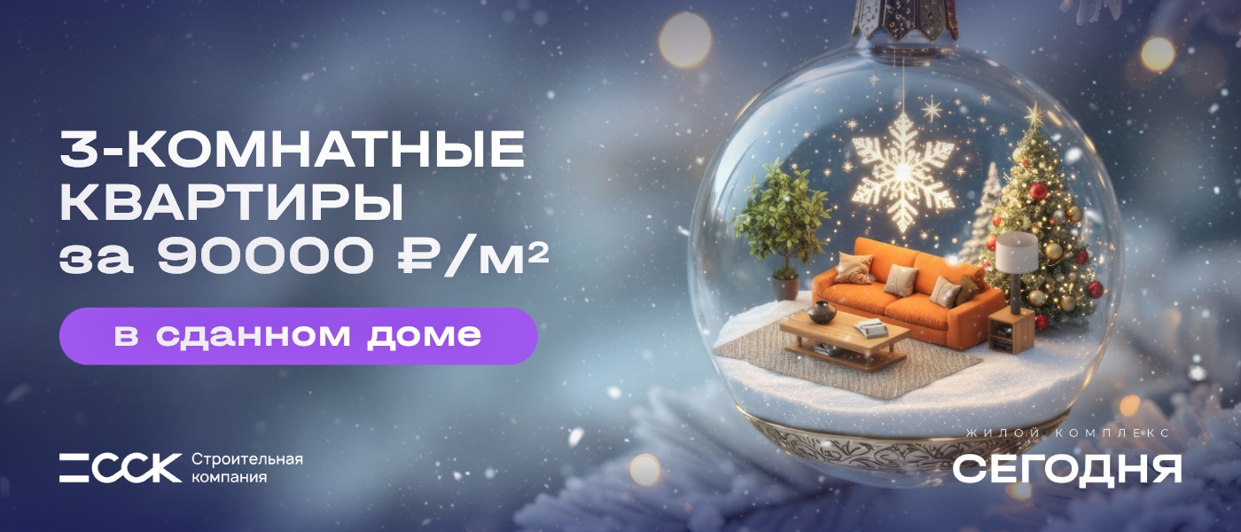ЖК «Сегодня» — трёхкомнатные квартиры в сданном доме по цене 90 000 рублей за квадратный метр.
