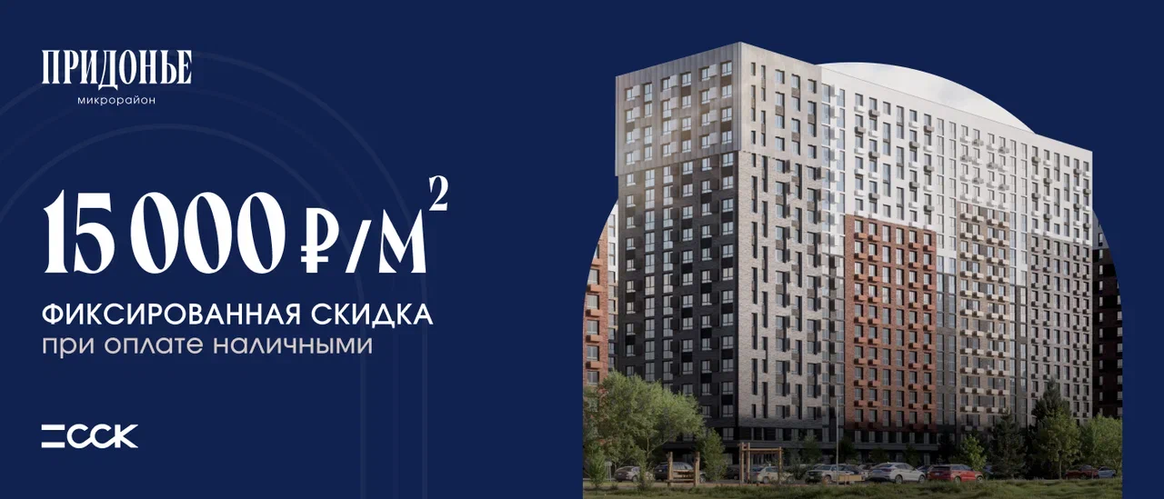 Скидка 15 000 ₽ за ₽/м² на 1‑3‑комнатные квартиры в ЖК «Придонье» при 100% оплате наличными или ипотеке.