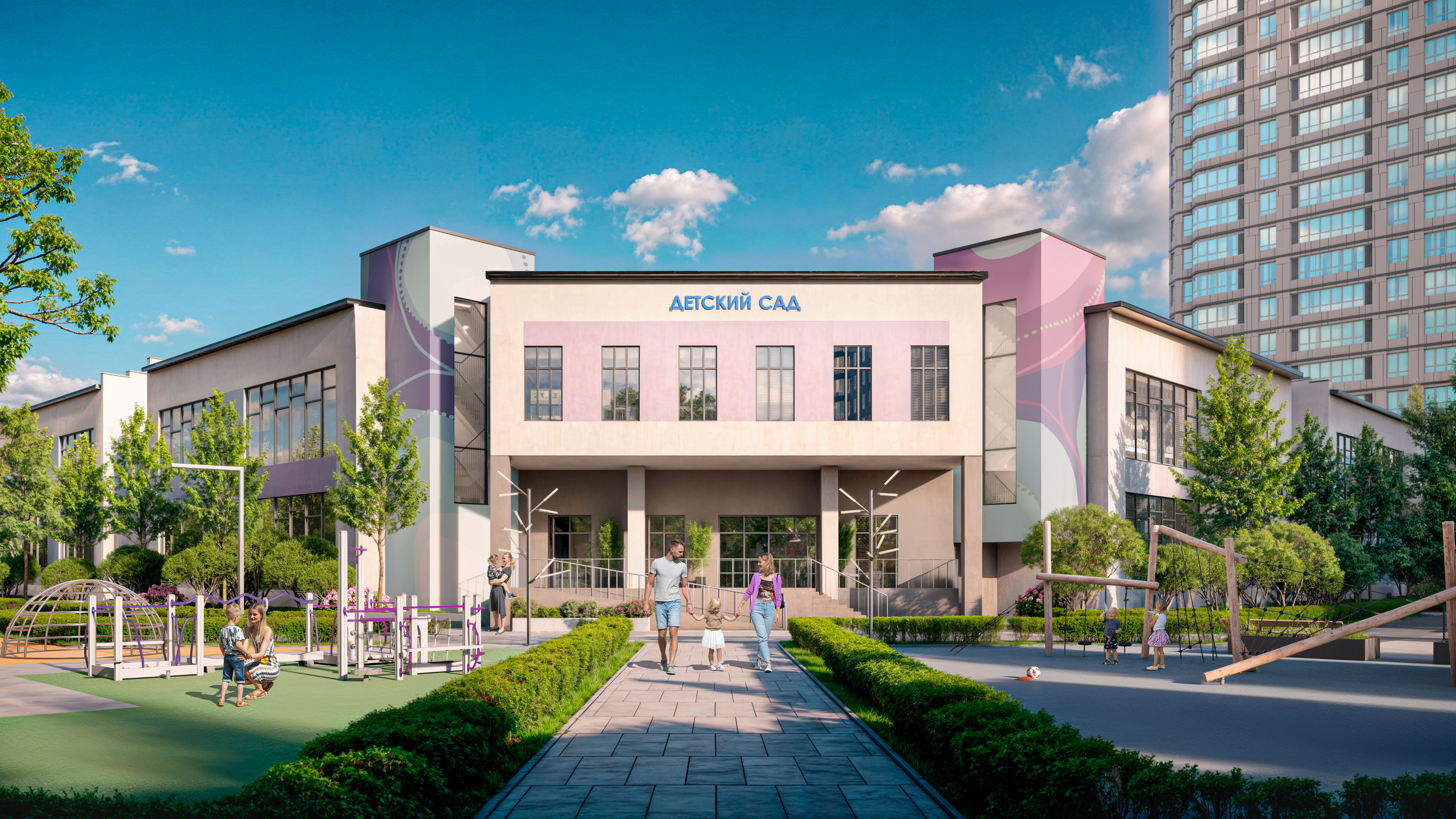 Детский сад на 250 мест в ЖК «Фонтаны» представляет собой современное образовательное пространство, где каждый ребенок может получить всестороннее развитие и качественную подготовку к школе. Расположенный на территории жилого комплекса, детский сад предлагает просторные и безопасные условия для комфортного пребывания детей. Здание спроектировано с учетом всех современных требований: светлые игровые комнаты, учебные классы, зона творчества и музыкальный зал создают идеальную среду для обучения и отдыха.